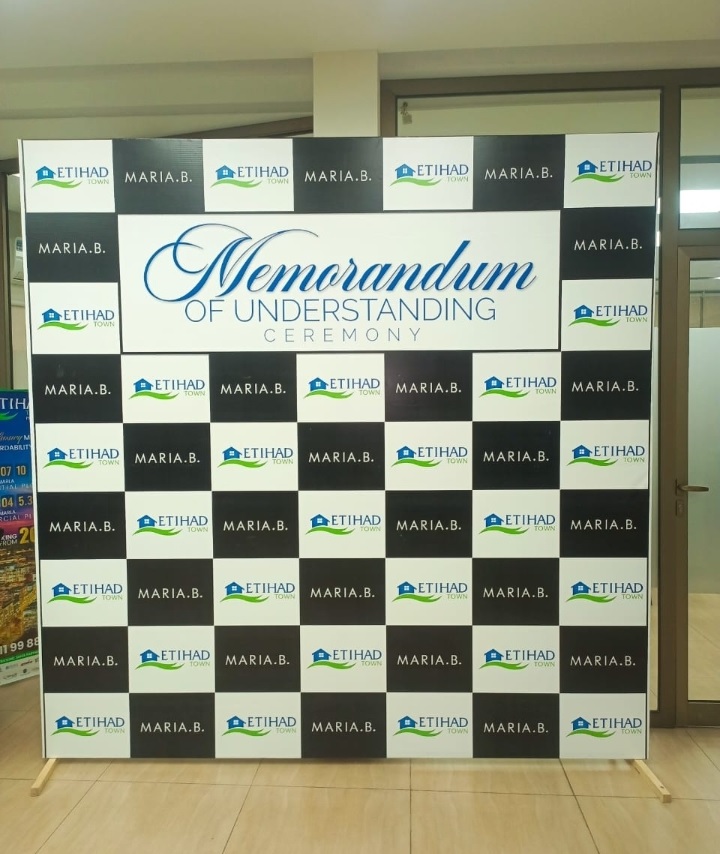 Premium Media Wall & Backdrop Printing for events and corporate branding. Includes Roll-up Standees, X-Standees, and professional Sticker Pasting. High-resolution, non-reflective finishes available at the best price in Pakistan from our Lahore shop.